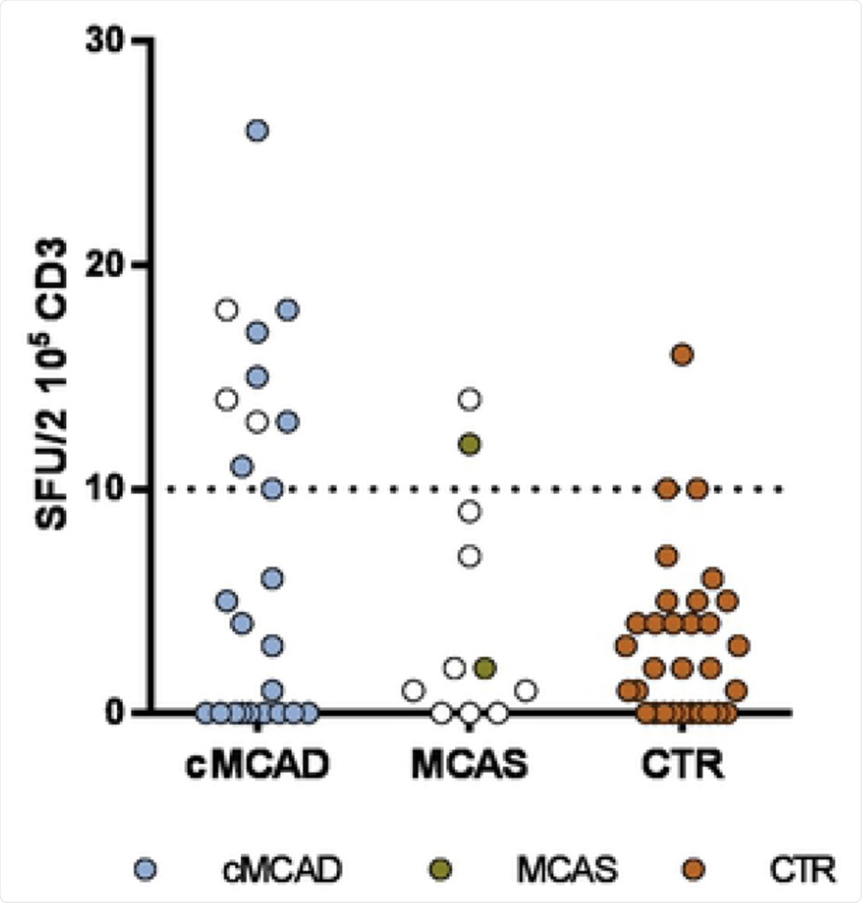 The researchers exploited the French rare disease network CEREMAST to identify patients with cMCAD who also had COVID-19, as confirmed by a positive polymerase chain reaction (PCR) test or serology. Sera from these patients were analyzed for T-cell reactivity by measuring IFN-γ from peripheral blood mononuclear cells (PBMCs) after stimulating them with different pools of SARS-CoV-2 peptides.