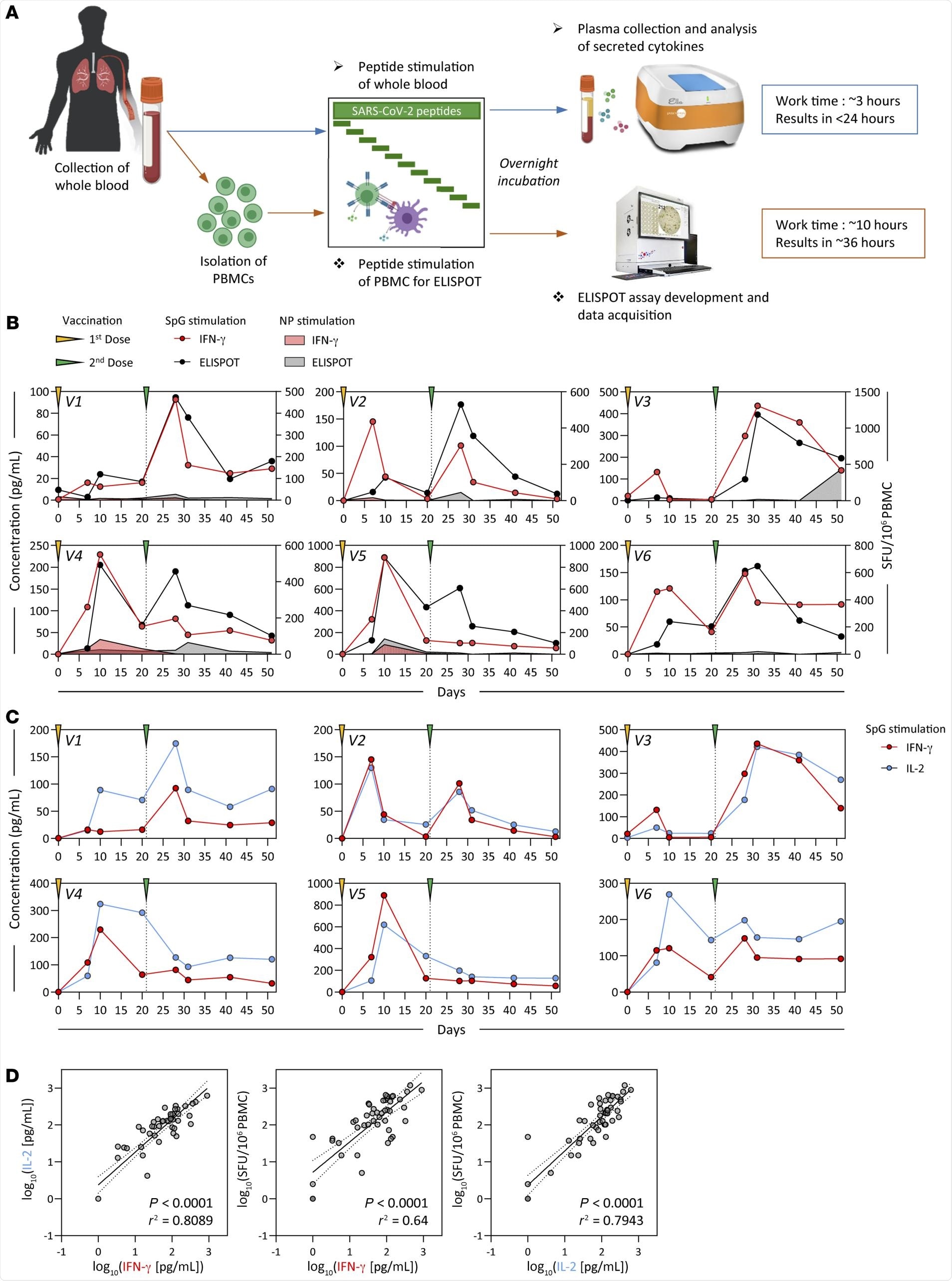 • Tan, A. T., Lim, J. M. E., Le Bert, N., et al (2021). Rapid measurement of SARS-CoV-2 spike T cells in whole blood from vaccinated and naturally infected individuals. The Journal of Clinical Investigation. doi:10.1172/JCI152379.
