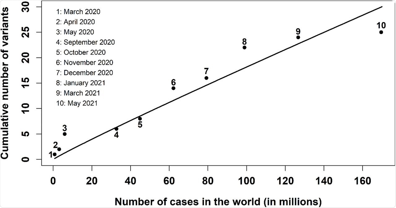 In a recent study published on the preprint server medRxiv*, researchers fit data on the most relevant SARS-CoV-2 variants according to the WHO by exploiting a function that exclusively depends on the global number of infected cases since the start of the pandemic. Their fit permits fairly accurate estimation of the number of relevant SARS-CoV-2 variants that can emerge for a particular number of infected individuals around the world. This new approach can also predict the number of new relevant variants per ten million cases in any epidemiological situation.