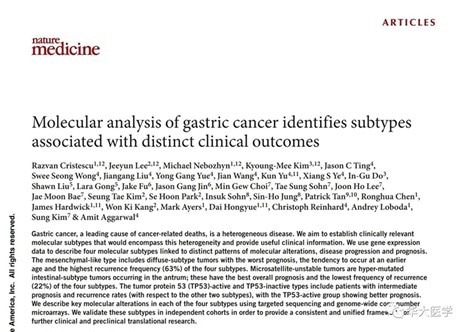 Research Results: Gastric cancer (GC) is one of the most deadly cancers and is highly heterogeneous. The research team combined GC heterogeneity characteristics and gene expression data to establish four molecular subtypes associated with different patterns of molecular alterations, disease progression and prognosis: MSI (microsatellite instability) subtype, MSI/EMT (microsatellite instability/epithelial-mesenchymal transition) subtype, MSS (microsatellite stability)/TP53+ subtype and MSS/TP53- subtype, which can help develop more customized treatment plans for different patients. The MSI/EMT subtypes can help develop more rational and personalized treatment plans for different patients. Among them, MSI/EMT has the worst prognosis, tends to occur in young patients and has the highest frequency of relapse (63%) among the four subtypes. The MSI subtype is common in the sinus and pylorus (70%) and often has an intestinal subtype (60%), with the best overall prognosis and lowest relapse frequency (22%). Both the MSS (microsatellite stable)/TP53+ subtype and the MSS/TP53- subtype have an intermediate prognosis and relapse rates. In addition, EBV virus infection rates were higher in the MSS/TP53+ subtype than in the other three groups.