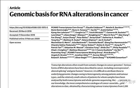 Research results: Transcriptional alterations are usually caused by somatic changes in the cancer genome. During cancer development, multiple modes of RNA alteration are covered, such as overexpression, altered splicing and gene fusion. However, it is difficult to correlate these with underlying genomic changes due to the heterogeneity between patients and tumor types. The team used matched whole-genome sequencing data to correlate multiple RNA alterations with germline and somatic DNA alterations to propose a catalog of cancer-associated genetic alterations across 27 different types of cancer. The study identified 1,900 splicing alterations associated with somatic mutations; it also confirmed that 82% of gene fusions were associated with structural variants. Moreover, transcriptomic alterations came with different characterizations in each different cancers, but were all associated with changes in DNA mutational features. This study of RNA alterations in a genomic context provides a heavy basis for discovering genes and genetic mechanisms associated with cancer function.