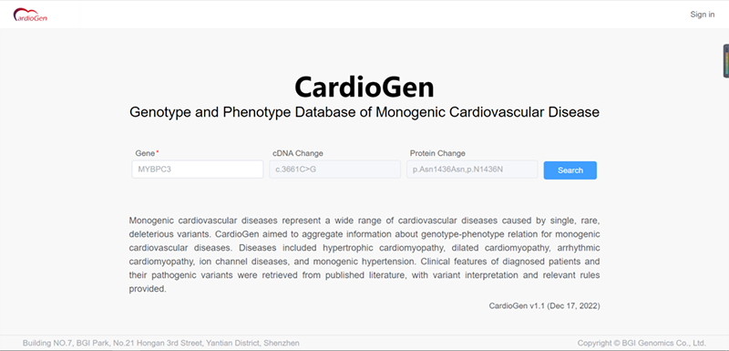 CardioGen comprehensively collects and integrates information on the variant loci of disease-causing genes reported in the global literature and public databases, as well as clinical phenotypes of patients, to facilitate accurate interpretation of the variant loci by clinicians once the genetic test results are available. As this database grows, clinicians can make more accurate clinical interpretations after receiving genetic test results.
