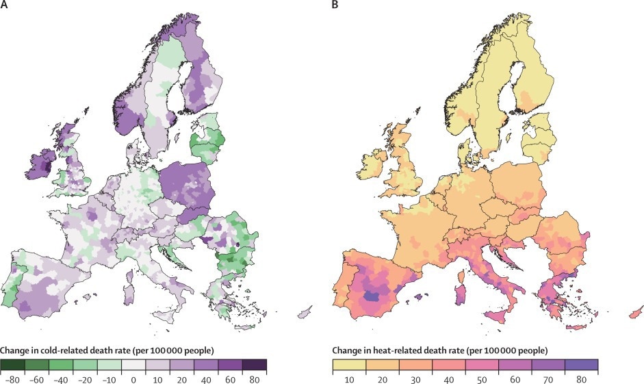Study estimates temperature-related mortality risks across Europe, projecting increased heat-related deaths, especially in Southern regions, due to climate change and an aging population.
