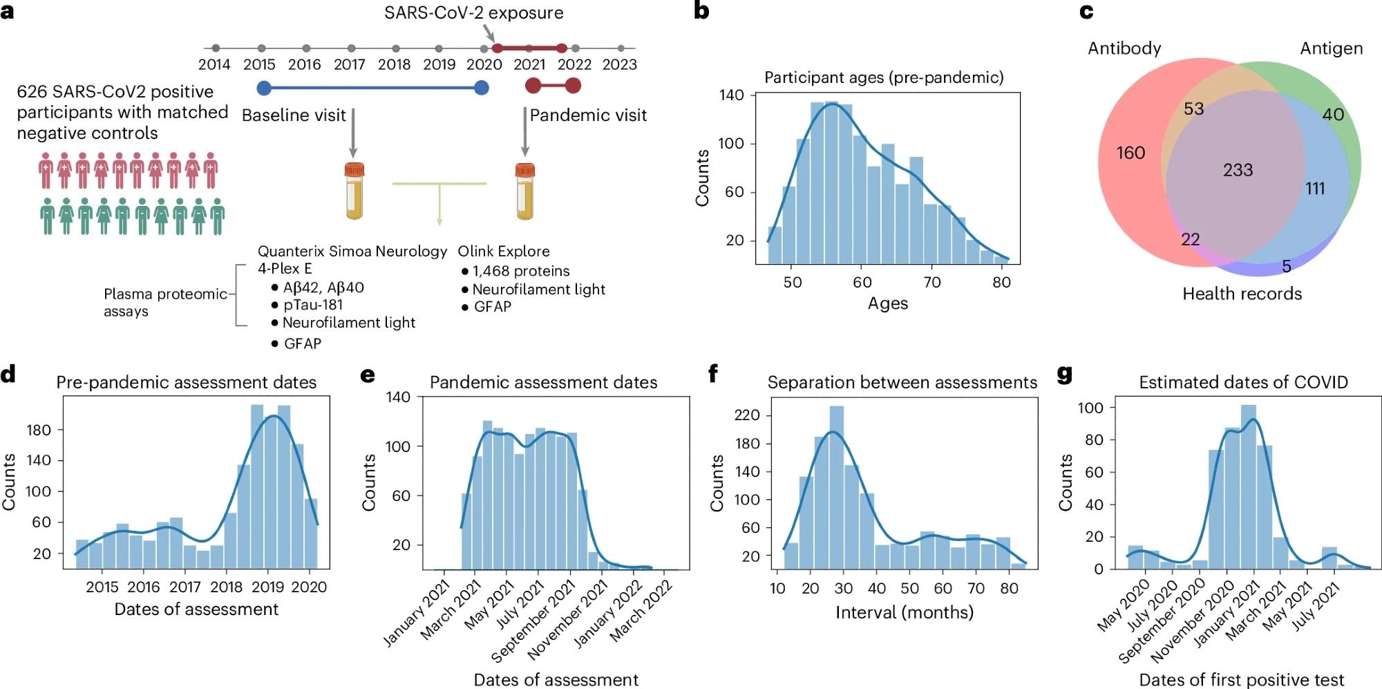 Blood samples were collected before and after the pandemic for the U.K. Biobank study, allowing researchers to track changes in key neurodegeneration biomarkers. Using ultrasensitive assays, they measured beta-amyloid (Aβ40, Aβ42), pTau-181, NfL, and glial fibrillary acidic protein (GFAP). Additionally, the study utilized proteomic analysis of 1,468 proteins using the Olink Explore platform, providing a broader understanding of how SARS-CoV-2 affects systemic health.