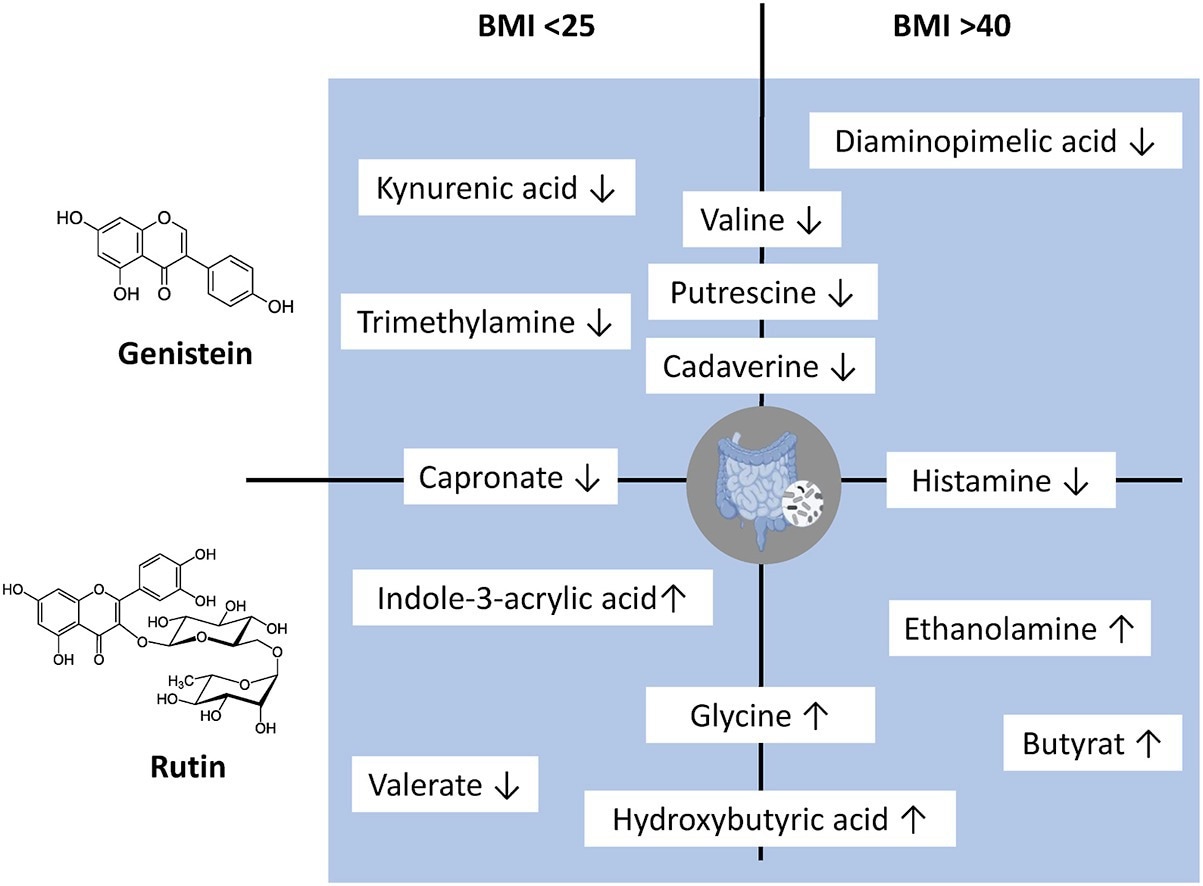 How your body weight influences the interaction of plant compounds with your gut: New research reveals that rutin and genistein elicit distinct gut metabolite changes, depending on BMI, paving the way for personalized nutrition strategies.