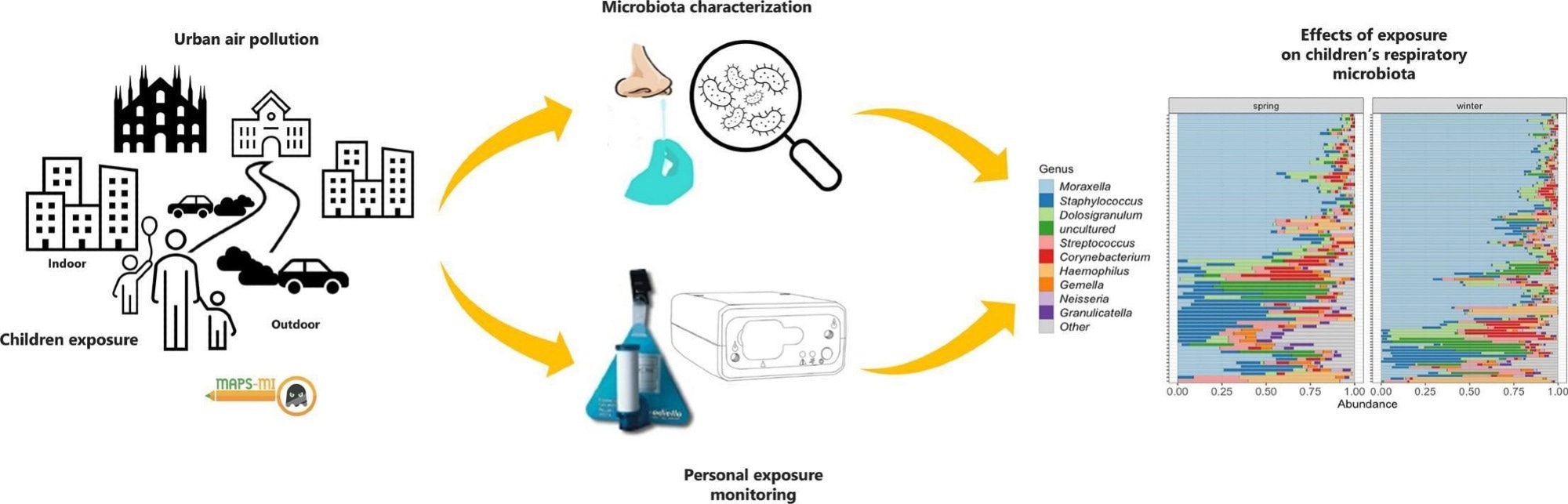Thus, air pollution reduces beneficial bacteria like Corynebacterium or increases potentially pathogenic species like Moraxella. Some species show a seasonal shift.