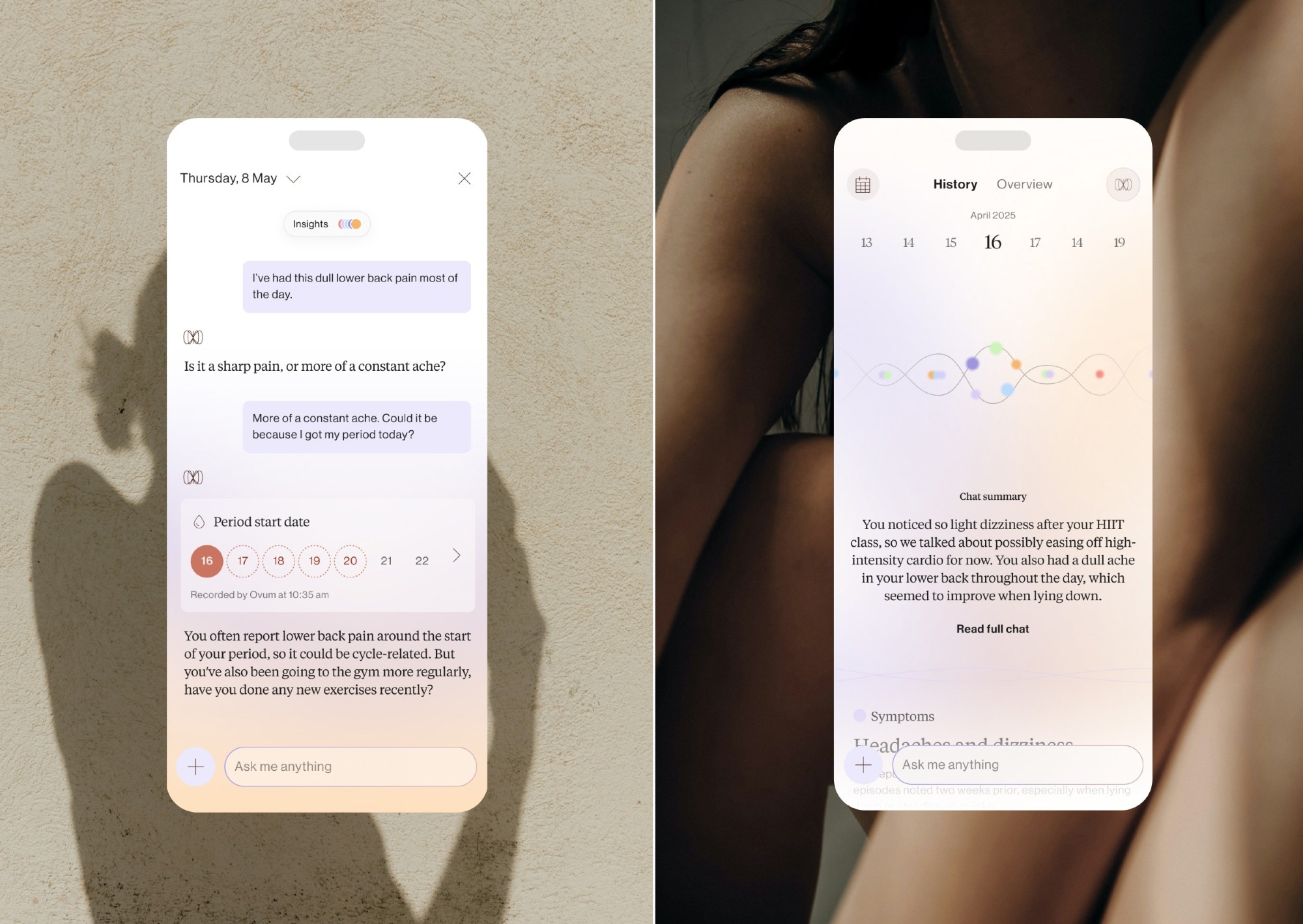Ovum draws from female-centric medical literature to understand and learn from a wide range of health factors, identifying patterns over time and providing timely, intuitive reminders when attention is needed.
