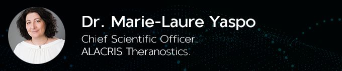 Dr. Marie-Laure Yaspo undertook her postdoctoral research at the Imperial Cancer Research Fund in London, UK. Since 1996, she has led a research group at the Max Planck Institute for Molecular Genetics (MPIMG) in Berlin. Dr. Yaspo is the Founder and CEO of Alacris Theranostics GmbH.