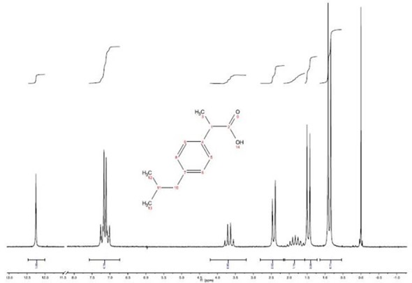 Permanent magnet-based NMR instruments use 2M ibuprofen in CDCl3 as the demonstration sample of choice as there is no significant signal overlap and the signals demonstrate interesting spectral phenomenon. One- and two-dimensional spectra of 1H and 13C, along with their interesting features, are demonstrated in this article.