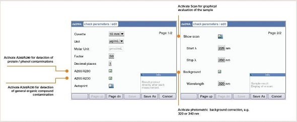 Figure 3. Parameter settings for nucleic acid quantification – Example BioSpectrometer.