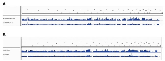 Chromatrap® supplies high-quality X-ChIP-seq and N-ChIP-seq kits. In this article, the enrichment of the histone H3K4me3 modification signal across the whole genome is compared, using the chromatin prepared by the two techniques (native and cross-link).
