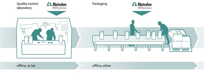Atline and offline processes such as intermediate and product assays or blending and granulation can be monitored using Metrohm’s NIRS Analyzers. [6, 7, 9] Blend homogeneity and, owing to real-time process monitoring, optimum granulation time can be evaluated. In addition, the uniformity of content in solid dosage forms (capsules and tablets) as well as tablet characteristics such as stability and hardness, can be established [10-14].