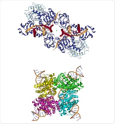 Figure 1. Top: PFV intasome (PDB ID: 3L2Q), Bottom: Cre-loxP synapse tetramer (PDB ID: 3MGV).