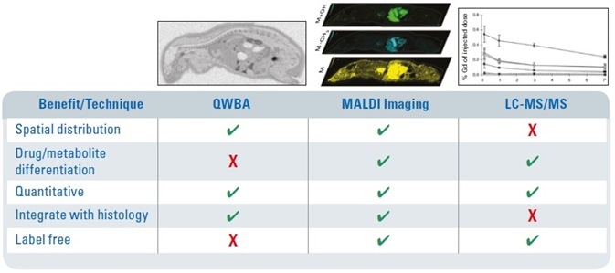 Crucial decisions can be made earlier: The low operational cost of MALDI Imaging enables it to be installed very early in the discovery pipeline to help make decisions sooner and closes the gap between traditional LC-MS and Quantitative Whole Body Autoradiography (QWBA) for distribution and metabolism research.