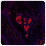 Mouse brain tissue sections stained with anti-HES5 (red) (ab25374).