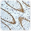The image above shows HDAC9 staining of human colon tissue using ab109446.