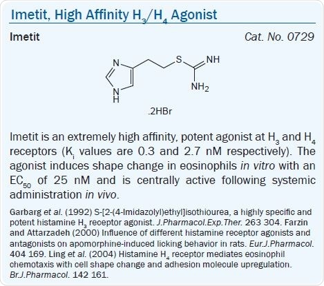 Tritiated forms of Nα-methylhistamine and (R)-(–)-αmethylhistamine are available as radiolabelled agonists for the H3 receptor. For potent H3 agonism, the amine function of histamine can be replaced by an isothiourea group, as in imetit. This compound is also extremely active in vitro and in vivo,71,72,73 as is (R)-(–)-α-methylhistamine. The amine function can also be included in ring structures.