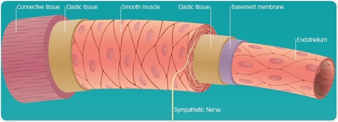 The vascular endothelium comprises a singular layer of epithelial cells that line all blood vessels in the body and thus occurs in all organs receiving blood supply. It embodies a very large surface area, as well as a mass that is comparable to alternative endocrine glands. The endothelium is no longer believed to be a simple barrier between smooth muscle and blood, but a source of numerous locally acting vasoactive compounds, including nitric oxide (NO) and endothelin-1 (ET-1). Moreover, vascular reactivity is regulated by the release of transmitters from nerves traveling with blood vessels to effectively every organ in the body, as well as hormones that circulate in the plasma.