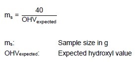 • Use a 15 to 20 g sample for samples with an expected hydroxyl value of 2 or lower.