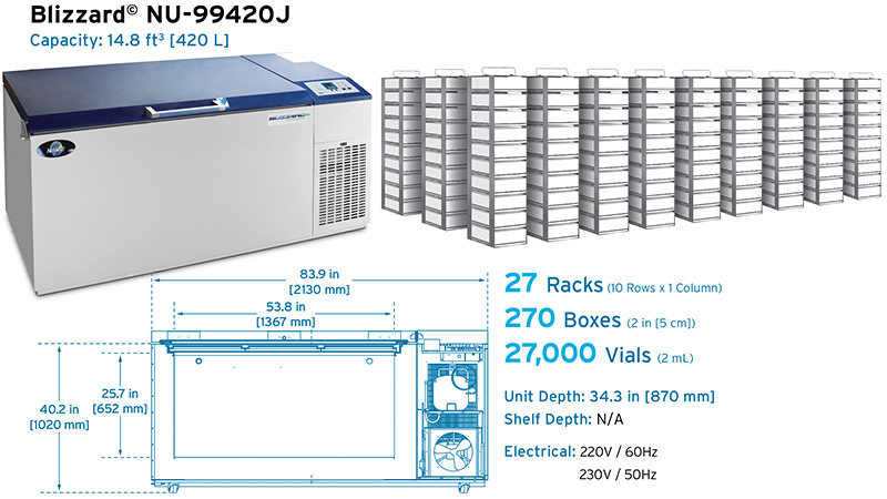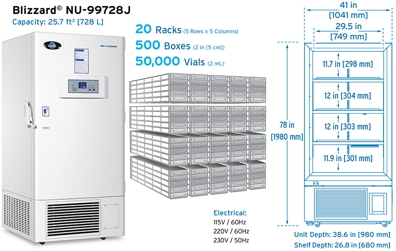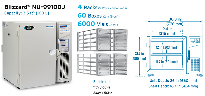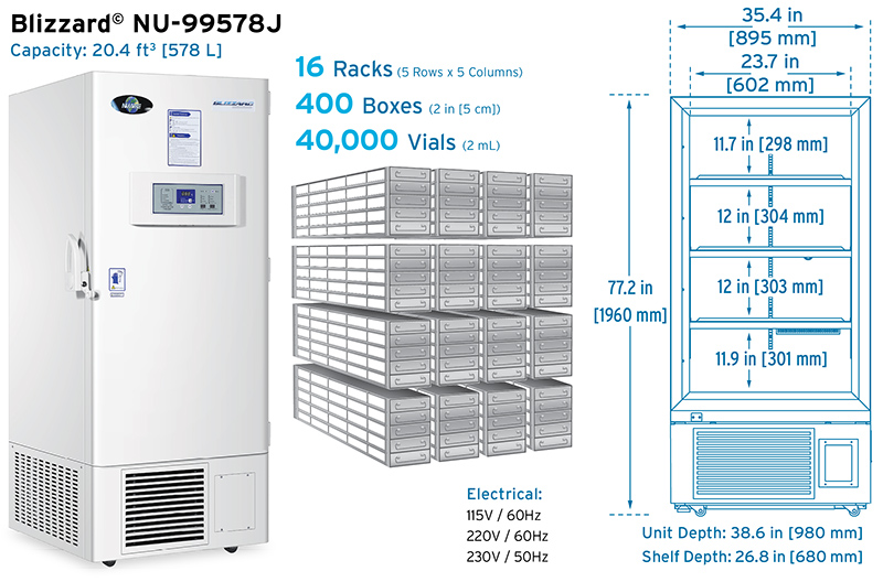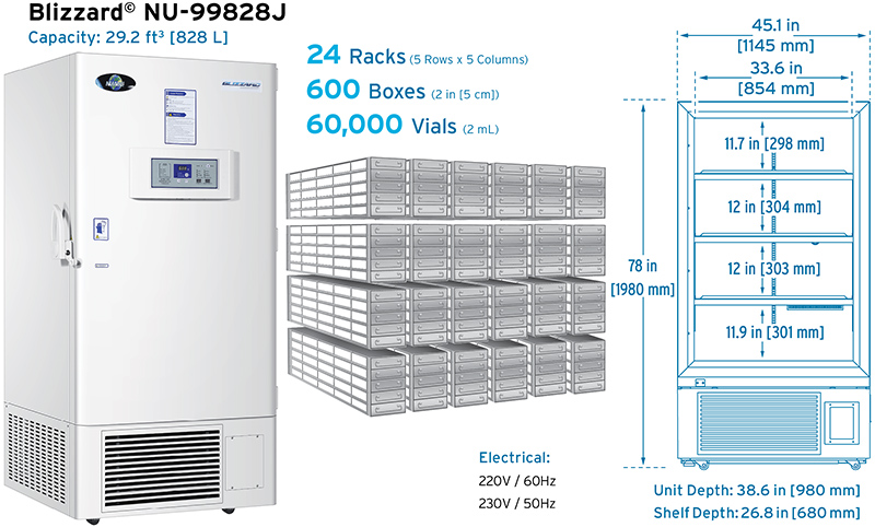 NuAire. "Blizzard® −86°C Ultralow Temp Freezer Rack Capacity". News-Medical. 17 January 2026. <https://www.intakehealthlab.com/whitepaper/20211110/e2889286-c2b0C-Ultralow-freezer-rack-capacity.aspx>.