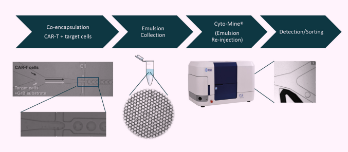 Cyto-Mine® delivers an entirely integrated microfluidic workflow of single-cell encapsulation, incubation, assay, categorizing, imaging, and dispensing, with the ability to process up to tens of millions of single cells in one working day.