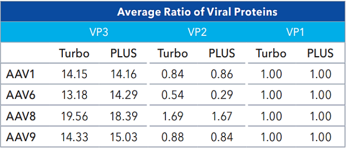 Capsid protein ratios (Turbo vs PLUS). Source: Bio-Techne