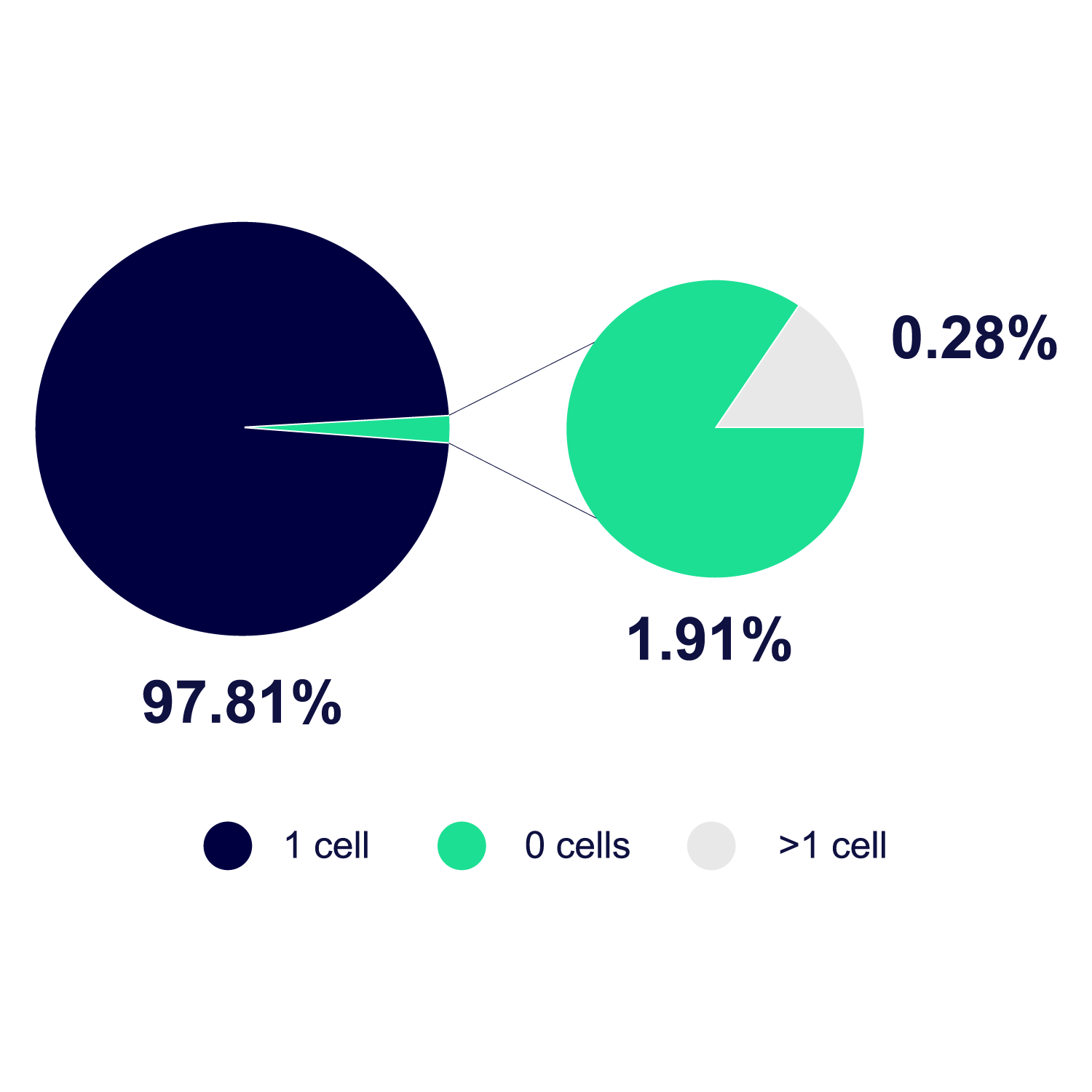 CHO-GFP cells were dispensed in 3 independent experiments with 3 UP.SIGHT 2nd Gens each. In total, 45 384-well plates (17280 wells) were analyzed. The number of cells deposited in each well was determined by well bottom imaging with a NYONE imager. Results were curated manually to correct algorithm-caused mistakes. Image Credit: CYTENA GmbH