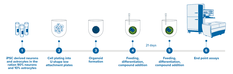 This biological system of 3D neurospheres and a detailed examination of calcium oscillations offer a potential and informative tool for disease modeling and phenotypic functional evaluation, which can be applied to compound testing.